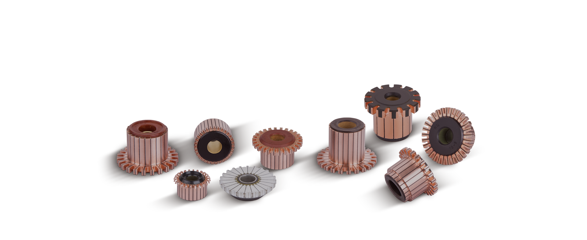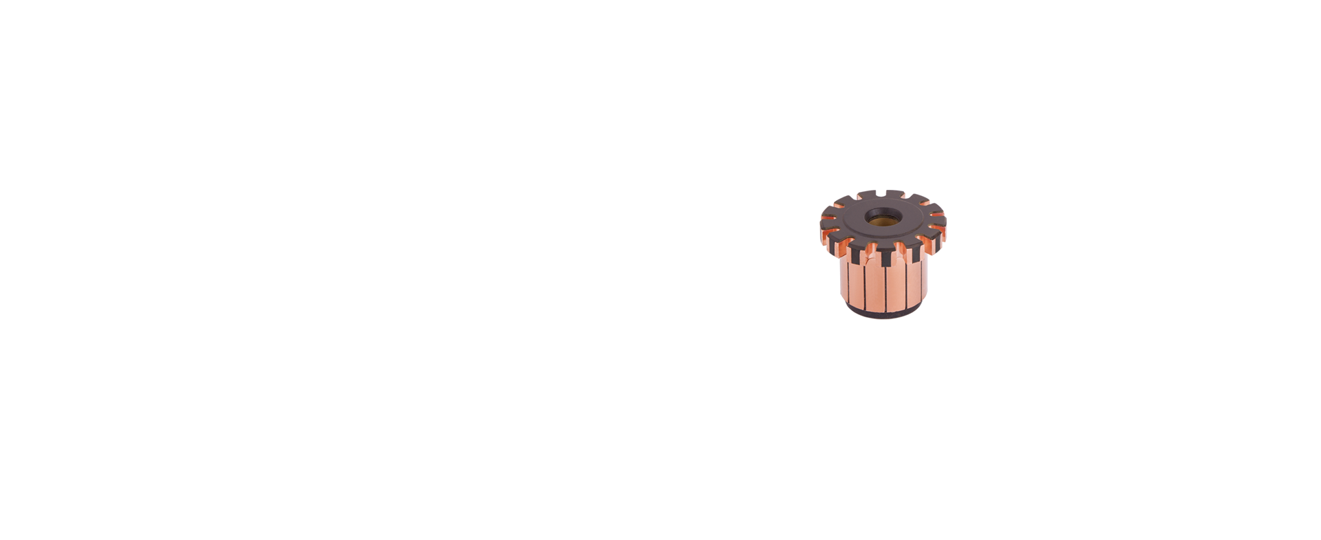 換向器接連接方式分構(gòu)形和槽形換向器, 構(gòu)造由內(nèi)至外由銀銅換向片,云母片,加強環(huán)和電木粉...
